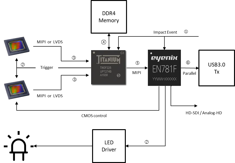 ②Ti90 transmits a trigger signal to CMOS without delay, and EN781F controls the LED light source to acquire an optimal image.